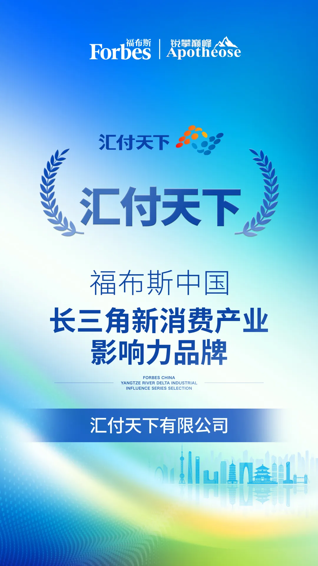此外,由福布斯中国与锐攀巅峰联合举办的“2025福布斯中国·长三角产业影响力系列评选”结果也正式出炉,汇付天下荣获“长三角新消费产业影响力品牌”称号。